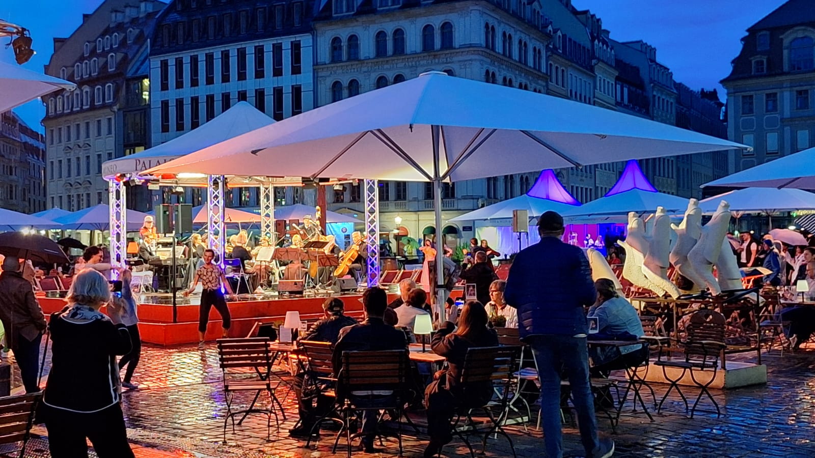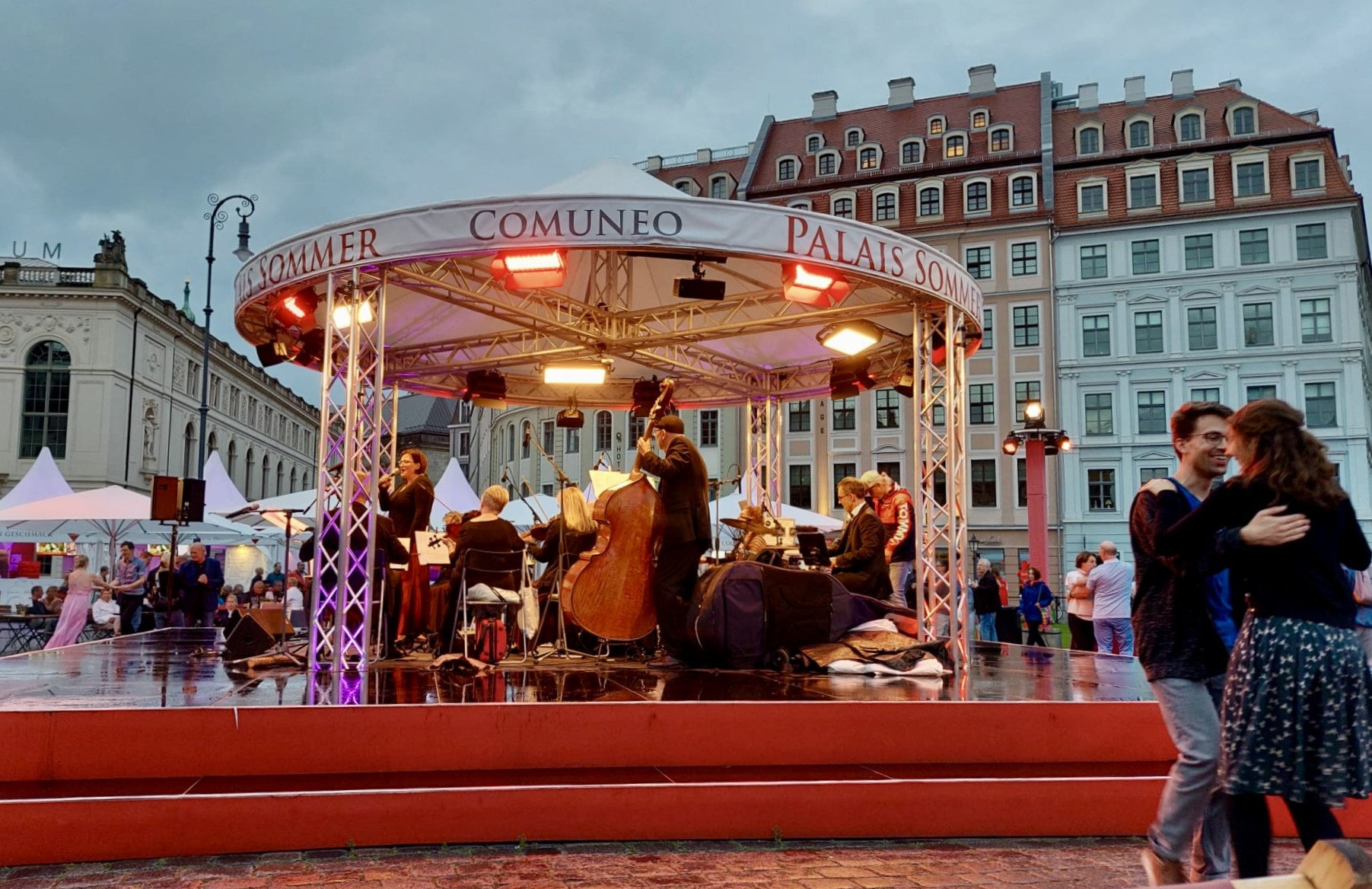 Das eintrittsfreie internationale Festival für Kunst, Kultur und Bildung lud unser Salon-Streichorchester Dresden (DE), gemeinsam mit DJ Acki aus Jena (DE), ein, am 12. Juli 2025 die Walzer Sommernacht des Festivals auf dem Neumarkt vor der Frauenkirche zu bespielen.
